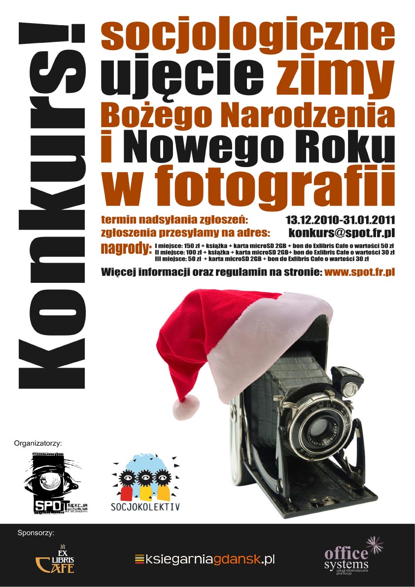 W związku z małym zainteresowaniem konkursem zimowym Sekcja Socjologii Wizualnej SPOT postanawia nie rozstrzygać konkursu. W dziale "Konkurs" zamieszczamy nadesłane prace, za które wszystkim uczestnikom szczerze dziękujemy.